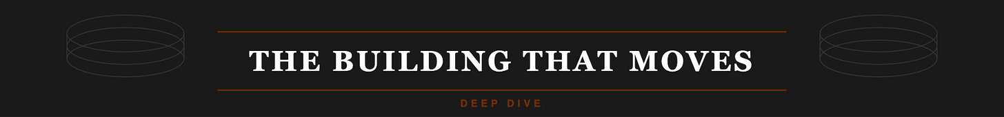 The building moved while it was being built. Then it was designed to move again, on demand, whenever the Pacific Plate feels like it.