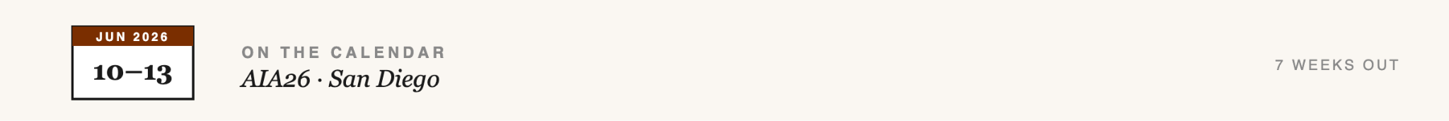 Go for: AI vs. Reality: Trust, Perception & Differentiation in Architectural Communication. Finally, a session asking whether AI in your pursuit narrative costs you trust with clients who can spot it.