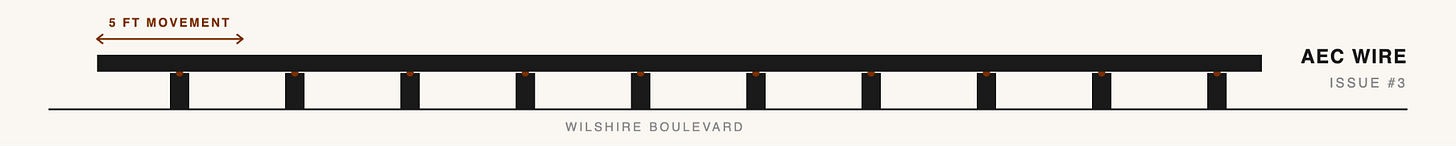 900 feet of concrete spanning Wilshire Boulevard. Ten towers holding it up withantilevers reaching 80 feet.